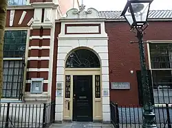 Guilds were disbanded during the French occupation, so the collective became a society and in 1799 the name changed to Ars Aemula Naturae, which still exists today.[2] The society meets in an old building on Pieterskerkgracht 9 since 1859. The building is a rijksmonument and contains some rare paintings on the ceiling by one of the earliest guild members, Martin Zaagmolen.[2]