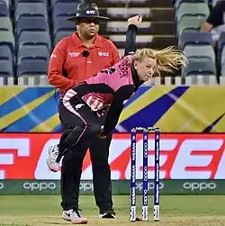 In August 2018, she was awarded a central contract by New Zealand Cricket, following the tours of Ireland and England in the previous months.[24][25] In October 2018, she was named in New Zealand's squad for the 2018 ICC Women's World Twenty20 tournament in the West Indies.[26][27] She was the leading wicket-taker for New Zealand in the tournament, with eight dismissals in four matches.[28]