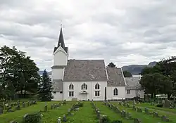 Leikanger Church (Norwegian: Leikanger kyrkje) is a parish church of the Church of Norway in Stad Municipality in Vestland county, Norway. It is located in the village of Leikanger on the shore of the Vanylvsfjorden. It is the church for the Leikanger parish which is part of the Nordfjord prosti (deanery) in the Diocese of Bjørgvin. The white, wooden church was built in a long church design in 1866 using plans drawn up by an unknown architect. The church seats about 370 people.[1][2]