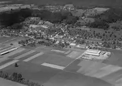Leimbach is first mentioned in 1300 as Leimbach.[3] During the Middle Ages the rights to collect tithes was divided between the Lords of Reinach, Hallwyl, Heidegg, Rupperswil, Büttikon, Falkenstein, Liebegg, and the Monastery at Beromünster. Starting in 1415 Leimbach was under Berner authority. At the behest of Bern, it broke away in 1528 from the Catholic parish of Pfeffikon and in 1529 joined the Reformed parish of Reinach. It wasn't until 1751 that the village received from Bern its own municipal law and mayor. In 1803, after the Act of Mediation, it became part of the newly formed Canton of Aargau.