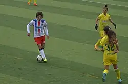 She played in six of the 2011 FIFA Women's World Cup qualification – UEFA Group 3 matches,[5][6][7][8][9][10] three of the UEFA Women's Euro 2013 qualifying – Group 2 games,[11][12][13] and three of the 2015 FIFA Women's World Cup qualification (UEFA) – Group B matches.[14][15][16] She scored in March 2011 the only goal in Georgia's first official win.[13] Chichinadze scored three goals in total for the Georgian women's national team.[13][8][16]