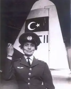 When Turkish Air Force decided to enroll women in 1954, she applied to enlist in the air force. She was the very first female student in the military school in İzmir. She was trained on propeller aircraft between 1955 and 1957. In an interview she says that in the early days, the school had no boarding facility for the female students and she had to stay as a guest in the house of an officer's family. On 30 August 1957, she graduated as a military pilot. Although, later, five other female students were also accepted to school, she was the only female student to join the aviation unit in Eskişehir military base.[4] She was trained in Eskişehir as a jet pilot and earned the rank of second lieutenant on 22 November 1958.[5] Up to 1967 she flew in Republic F-84 Thunderjet and Lockheed T-33. Later years she served in staff duty. She retired as a senior air colonel.[3]