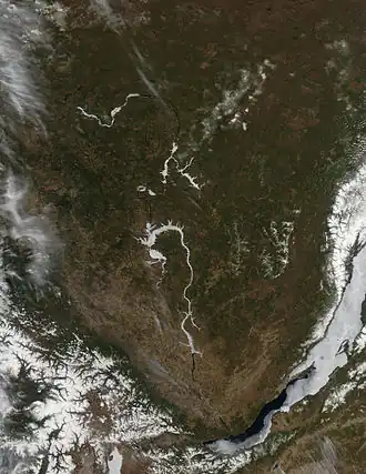 ![]() Satellite picture of the Irkutsk-Cheremkhovo Plain and the Lena-Angara Plateau | |