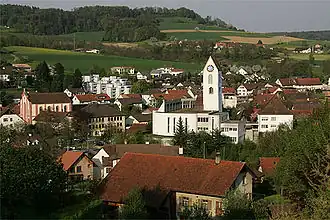 St. Martin's Church was built in 1977, incorporating the older baroque choir and tower. The Reformed Church members are part of the parish of Tegerfelden since 1940. Before that, it is unclear what parish they may have belonged to. The Jewish population built their first synagogue in 1750 and the second in 1847, which shaped much of the modern village.[3]