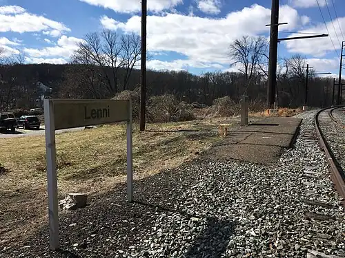 Lenni station is a defunct commuter rail station on the SEPTA Regional Rail R3 West Chester Line, located in Middletown Township, Delaware County, Pennsylvania. The station and several others were closed in September 1986, and subsequently demolished.