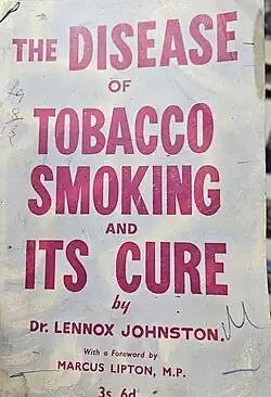 Lennox Johnston (15 May 1899 – 18 January 1986) was a Glaswegian GP and amateur scientist who pioneered research in the addictiveness of nicotine in the 1930s and campaigned against the harmful effects of smoking.[1] Although initially dismissed, he was fully justified and was honored by the Royal College of Physicians in 1976, where Sir Cyril Clarke likened his contribution to that of the work by Semmelweis on preventing sepsis.
