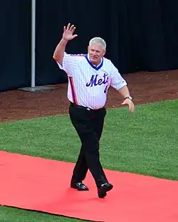 53. ^ "Yanks' fans celebrate as Mets' mourn". USA Today. October 27, 2000. p. 6C. Retrieved February 19, 2025 – via Newspapers.com. Briefly: Members of the New York Mets' 1986 World Series champions—catcher Gary Carter, first baseman Keith Hernandez, outfielders Lenny Dykstra and Mookie Wilson and pitcher Ron Darling—took part in the ceremonial first pitch