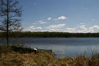 ![]() Leo Lake looking west from the portage head to Flintoba Lake | |