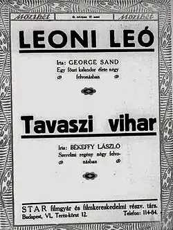 Leoni Leo (subtitled The Life of an Armenian Adventurer) is a 1917 Hungarian adventure film directed by Alfréd Deésy. The Jozsef Pakots screenplay was adapted from the original novel by George Sand called Leone Leoni. The sets were designed by Sironthai Istvan.[1]