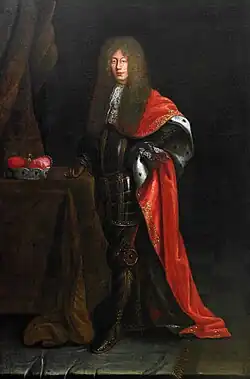 In 1698, shortly after he assumed the title of Prince of Dietrichstein following his father's death, Leopold Ignaz Joseph was named Knight of the Order of the Golden Fleece as the Knight 591 since his foundation. His first high appointment took place only in 1705, when he was named a member of the Imperial Chamber. His renewed career was stopped by his early death in 1708 at the age of 48, from tuberculosis.[1]