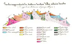 Pilla maintained notes on his life from 1830 that were later published as Notizie storiche della mia vita quotidiana a cominciare dal 1mo gennaro 1830. He however omitted the fact that he was in love with the daughter of the chemist Filippo Cassola, who however married his classmate Arcangelo Scacchi. He contemplated suicide in 1836. He acknowledged an illegitimate son Leopoldo Nocentini at the time of his death. A plaque marks his home in Venafro, as also a school named in his honour. Although he published in journals and influenced numerous students, Pilla's primary geological output was in his two volume Trattato di Geologia (1847).[4] In his Trattato, he made use of a French translation of Charles Lyell's Elements of Geology, adopting Lyell's terminology. Pilla however did not believe in geological activity being uniform and suggested that the slow cooling of the Earth had reduced the intensity of volcanic eruptions and earthquakes.[5]