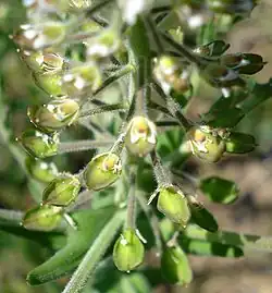 The stem of field pepperweed comes out of a basal rosette of toothed leaves. The stem is covered in leaves, which are sessile, alternate and arrow-shaped.[2] The entire plant is generally between 20 and 60 cm tall and covered in small hairs.[2]