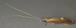 The family Leptoceridae are a family of caddisflies often called "long-horned caddisflies" or "silverhorns". Leptoceridae is the second largest family of caddisflies with over 1850 species in approximately 68 genera.[1] The main identifying feature of most Leptoceridae is that their antennae are much longer than those of other caddisflies. There is one genus with relatively short antennae (Ceraclea), but it is easily identified by the pair of dark curved lines on the mesonotum.