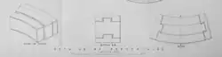 [The dovetailing system first adopted at Les Hanois] consists in having a raised dovetailed band 3 inches in height, on the top bed and one end joint of each stone; a corresponding dovetailed recess is cut in the bottom bed and end joint of the adjoining stones, with just sufficient clearance for the raised band to enter it freely in setting; immediately the cement has hardened, the stone is so firmly secured to the adjoining stones as to be nearly equal in strength to solid granite. This system of dovetailing also affords great protection to both horizontal and vertical joints against the wash of the sea when the work is first set.[7]