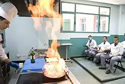 Students are split into the red, blue, green, or purple houses that becomes their cohort and "in which the different nationalities have a balanced representation."[4] In 2022, the Marbella campus enrolled students from more than 91 countries.[3] Les Roches students adhere to a strict schedule and dress code, and must demonstrate sufficient housekeeping of their personal space, including ensuring the bed has been made.[12] Students live on campus for their first year and are taught to manage stress and avoid burnout.[4][12] In addition to coursework, including hands-on tutorials, students have extracurricular options including sports and gastronomic clubs.[4]