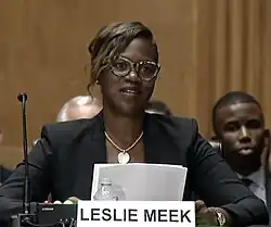 On December 15, 2021, President Joe Biden nominated Meek to serve as a Judge of the Superior Court of the District of Columbia. President Biden nominated Meek to the seat to be vacated by Judge Judith Anne Smith, whose term subsequently expired on January 21, 2022.[4] On September 21, 2022, a hearing on her nomination was held before the Senate Homeland Security and Governmental Affairs Committee.[5] On September 28, 2022, her nomination was favorably reported out of committee by voice vote en bloc, with Senators Rick Scott and Josh Hawley voting "no" on record.[6] On December 15, 2022, her nomination was confirmed in the Senate by voice vote.[7] She was sworn in on January 17, 2023.[8]