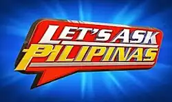 Let's Ask Pilipinas was a Philippine television game show created by Telepictures, based on the American television game show Let's Ask America. It was aired from October 14, 2013 to November 21, 2014 on TV5. It was hosted by Aga Muhlach on its first and second season. The show was part of the Everyday All the Way weekday primetime block.[1] The show returned on July 7, 2014 on its third season as part of TV5's noontime block and was hosted by Ogie Alcasid.