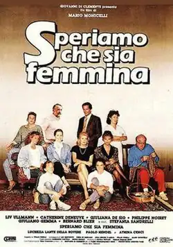 Let's Hope It's a Girl (Italian: Speriamo che sia femmina) is a 1986 Italian comedy film directed by Mario Monicelli. For this film Monicelli was awarded with a David di Donatello for Best Director and a Nastro d'Argento in the same category. The film also won the David di Donatello for Best Film, Best Supporting Actress, Best Supporting Actor, Best Producer, Best Editing and Best Script.[1]