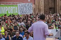 The usage of the slogan increased during the pre-campaign and campaign for the general elections of July 23, 2023.[5][22] It would come from positions close to the two main political parties of the Spanish right (PP and Vox) or directly from them. During the celebration of the Sanfermines in Pamplona at the beginning of July, the live broadcast of Televisión Española was interrupted on numerous occasions with the cry of "Let Txapote vote for you, Sánchez".[23]