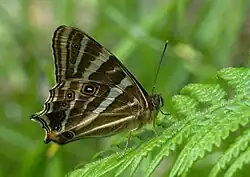 Lethe baladeva, the treble silverstripe, is a Satyrinae butterfly found in the Indomalayan realm (Uttarakhand and east to Sikkim, Bhutan and Assam). The species was first described by Frederic Moore in 1866.[2][3][4]