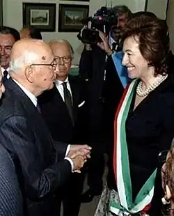 Moratti is a businesswoman who has worked in insurance and telecommunications. Between 1994 and 1996, she was chairperson of the Italian state television company RAI. At the end of 1998, for about a year she became chairman of News Corp Europe, a company headed by Rupert Murdoch and owner of Stream TV. From 2001 to 2006, Moratti was Minister of Education, University and Research in the second and third Berlusconi cabinets. During her mandate, she put forward a reform of the education system, which became the Moratti Law. She ran in the 2006 Milan municipal election as the House of Freedoms mayoralty candidate and won with over 52% of the votes.[1] She sought a second term in the 2011 Milan municipal but lost to the centre-left coalition candidate Giuliano Pisapia.
