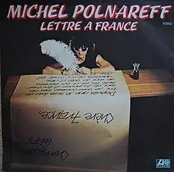 "Lettre à France" is a single by French singer Michel Polnareff that was released in 1977. The artist had been living in California since 1973, in part due to financial problems. The song, whose title means "Letter to France" in English, is about living in exile, and is a love song to his home country.