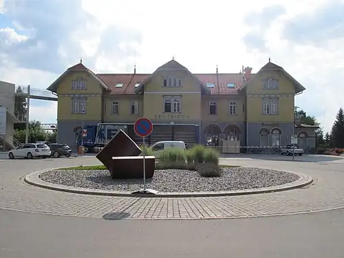 On 14 August 1874, it became a through station with the opening of line to Isny. In preparation for the opening of the line to Memmingen on 2 October 1889 when Leutkirch became a railway junction, the current station building was built as a “wedge station” (German: Keilbahnhof) between the diverging tracks.