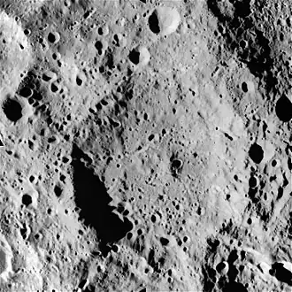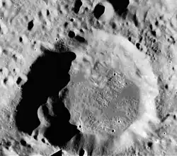Levi-Civita is a lunar impact crater formation that lies on the far side of the Moon. It was named after Italian mathematician Tullio Levi-Civita.[1] It is located just to the southwest of the large walled plain Gagarin, and nearly as close to the crater Pavlov to the south-southwest. To the northwest of Levi-Civita lies the smaller crater Pirquet.