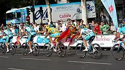 Leipheimer followed his California performance with third place overall in the Tour de Suisse.[26] Leipheimer won a stage of the Tour of Utah,[27] and finished third overall in the USA Pro Cycling Challenge, having led the race for one day.[28]