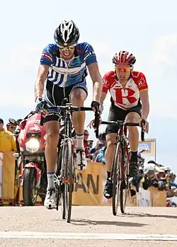 Levi Leipheimer (born October 24, 1973) is an American former professional road racing cyclist. He was twice US national champion, winning the time trial title in 1999 and the road race in 2007, and is an Olympic medalist. Leipheimer was born and raised in Butte, Montana and resides in Santa Rosa, California.[1][2] He is the patron of the widely attended King Ridge GranFondo, a mass participation ride in Sonoma County.