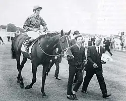 ![]() Levmoss and Bill Williamson return after winning the Gold Cup at Royal Ascot in 1969 | |