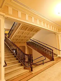 Instead, the Barret brick building was ordered into sale by the county's Superior court with the express understanding that the county would purchase the site for no more than $8,000.[8] The city completed the sale of the three-story hotel structure for $6,500, spending an additional $3,000 for repairs and upgrades.[2][1][e] Major renovations were undertaken in late 1899 which included an overhaul of the layouts of each floor.[12]