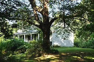 Built c. 1825, it is a Federal style house that is two-and-one-half-stories with a flank gable roof and an L-plan. The house is set into a small hill and has a one-and-one half-story, gabled ell at the rear. An original, two-story, hip-roof veranda extends across the front; its second story level continues along the side and ell. The veranda roof slope is integral with those of the main house and ell. There is a central entrance on each story in the five-bay facade beneath the veranda; the second-story entrance has sidelights and decorative trim. The house was probably standing when Lewis Tower purchased a 19-acre farmstead here from Philip Thomas in 1833.[2]