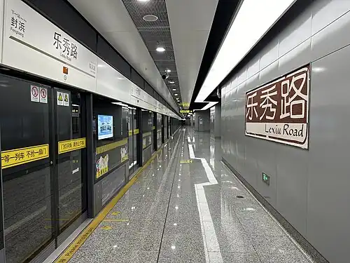 Lexiu Road[1] (simplified Chinese: 乐秀路; traditional Chinese: 樂秀路; pinyin: Lèxiù Lù), formerly known as Jinyuanwu Road (simplified Chinese: 金园五路; traditional Chinese: 金園五路; pinyin: Jīnyuánwǔ Lù), is a station that is part of Line 14 of the Shanghai Metro. Located at the intersection of Lexiu Road and Cao'an Highway in the city's Jiading District, the station opened with the rest of Line 14 on December 30, 2021.[2][3]