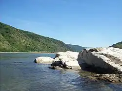 Ley, also lay, lei, lai, laige[1] or lägge,[2] and, according to Grimm, leie, is a commonly occurring name for rocks or crags in the Rhenish and Lower German language regions. It is derived from the Old Saxon word, lêia. It is particularly associated with rock precipices (Felsabbrüche) and rock faces (Felswände), but also with rock slabs (Felsplatte). In addition, it is also used in the sense of shale or slate (Leienstein), and also to mean "slate" in the sense of a blackboard or roofing tile (Leiendecker). Its Dutch form is leyde or leye.[3]