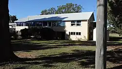 Leyburn is a rural village on the southern reaches of the Darling Downs, some 50 kilometres (31 mi) northwest of Warwick, on the banks of Canal Creek. The school grounds are sited on the western fringe of the township. The school building addresses Peter Street to the west, and nestled behind it beneath a canopy of camphor laurels is the playshed. To the south of the school building is the residence, to the north a demountable classroom block, to the east is the sports field and to the northeast is the tennis court, toilet block, swimming pool and change sheds. There are several silky oak trees to the eastern and western perimeters.[1]