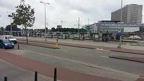 Leyenburg is a RandstadRail station in The Hague, Netherlands. It is a stop for RandstadRail line 4, tram line 6, and bus lines 21, 23, 26, 27, 31, 34, 35, 36, 37 and 86, and is located on the Leyweg. Leyenburg serves as an important interchange between bus and tram services.[1]