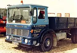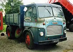 The semi-bonneted original Comet was first shown in December 1947.[1] While intended mainly for export, it was also sold in the home market. The wheelbase is 17.5 ft (5.3 m) and the gross weight 8.75 long tons (8,890 kg).[2] A coach model seating 33, sharing the same front design, appeared in 1948.[1] The cab was built by Briggs Motor Bodies and was shared with the Ford Thames ET6 and Dodge 100.[3] Ford purchased Briggs in 1953, meaning Leyland (and Dodge) were forced to develop new cabs. The original engines were a 75 hp (56 kW) diesel or a 100 hp (75 kW) petrol unit; the petrol version was rarely seen in Britain.[4]