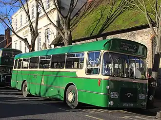 Hull Corporation Transport were an early adopter of the Leyland Panther with Charles H. Roe bodywork, with one Panther being built in 1964 initially for exhibition by the manufacturer at the Commercial Motor Show. The Hull Corporation eventually took delivery of a total twelve Roe-bodied Panthers.[9][10][11] East Yorkshire Motor Services also ordered Panthers, ordering 19 with Marshall bodywork in 1965 and 1966,[12] while the West Riding Automobile Company took 45 Leyland Panthers in 1967 with both Marshall and Roe bodywork.[13] One has been preserved at the Dewsbury Bus Museum and is restored to "as delivered" condition.