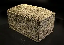 The Leyre Casket (Arqueta de Leyre, Museo de Navarra inventory number 1360-B, also known as the Leire Casket, Pamplona Casket) is one of the jewels of Hispano-Arab Islamic art. It is a casket or reliquary made of elephant ivory which was made in 1004/5 in the Caliphate of Cordoba.