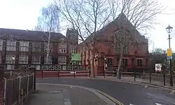 Originally a grammar school called Leyton County High School for Girls, the buildings at the junction of Colworth Road and Forest Road on the edge of Epping Forest were opened in 1911; girls were transferred there from the private Elson House Girls High School in Wallwood Road and from the mixed Leyton and Leytonstone high schools.[4] The school was built on the site of Forest Farm and was designed in the Tudor style by William Jacques ARIBA, who was the architect for the Leyton Urban District Council.[5]