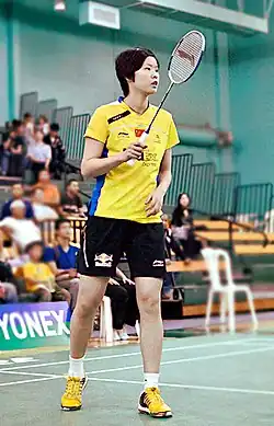 Li Xuerui (born 24 January 1991) is a retired Chinese professional badminton player. She is one of the most successful players of her time. She was a gold medalist at 2012 London Olympics in the women's singles event and was the silver medalists in the 2013 and 2014 World Championships.[2][3] Li Xuerui won fourteen Superseries titles, confirming her status as China's second most successful player after Wang Yihan. She reached a career high of no. 1 in the women's singles for 124 weeks. Li graduated with a BA from Huaqiao University.[4]