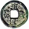 Liao dynasty coins (like some contemporary Song dynasty coins) can be read top-right-bottom-left (clockwise), but unlike the Song's coinage never appeared top-bottom-right-left. Liao dynasty era coins have appeared in both Chinese and Khitan scripts.[3][4] The coins in Khitan script do tend to have different character orders,[5] Though these coins weren't meant for circulation.[6]