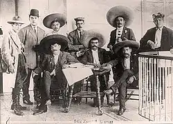 The Liberation Army of the South (Spanish: Ejército Libertador del Sur, ELS) was a guerrilla force led for most of its existence by Emiliano Zapata that took part in the Mexican Revolution from 1911 to 1920.[1] During that time, the Zapatistas fought against the national governments of Porfirio Díaz, Francisco Madero, Victoriano Huerta, and Venustiano Carranza. Their goal was rural land reform, specifically reclaiming communal lands stolen by hacendados in the period before the revolution. Although rarely active outside their base in Morelos, they allied with Pancho Villa to support the Conventionists against the Carrancistas. After Villa's defeat, the Zapatistas remained in open rebellion. It was only after Zapata's 1919 assassination and the overthrow of the Carranza government that Zapata's successor, Gildardo Magaña, negotiated peace with President Álvaro Obregón.