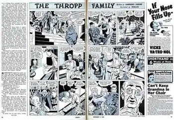 Interior spread of Liberty (December 7, 1946) shows the continuing comic strip The Thropp Family by Lawrence Lariar, Don Komisarow and Lou Fine.