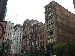 Beginning in the 19th century, the thoroughfare became a place of middle- and upper-class commerce. A history of Pittsburgh notes that a Market House was established in 1832 along Liberty Street between Sixth Street and Cecil Alley.[3] Liberty also hosted food suppliers, brewers, and small manufacturers. In 1894, the Joseph Horne department store was built there. In the early 20th century, the Clark Building (named for the Clark candy company) and the Second National Bank were built. At length, it became a home for theater and movies, with the Stanley Theatre, the Lowe's Penn and the Harris Theatre. However, much of this activity was checked, first by the Great Depression, and then by the St. Patrick's Day Flood of 1936. Some businesses were closed, and others moved elsewhere.[4]
