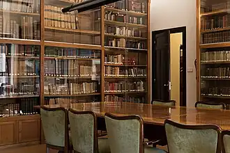 It was formally founded in the summer of 1946 at 3 Calle San Vicente in Oviedo, but moved to its present location in the Palacio Conde de Toreno on the Plaza de Porlier in 1957.[1] It specialises in bibliographic documents and documentaries on Asturias and is one of the centres of study for the Royal Institute of Asturian Studies (RIDEA).[2] It has a collection of about 20,000 volumes.[1]