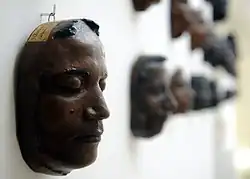 ![]() Facial plaster casts made by Lidio Cipriani (1927–1930). The original white plaster casts were then painted according to the color of the skin of the subject, using a color scale. | |