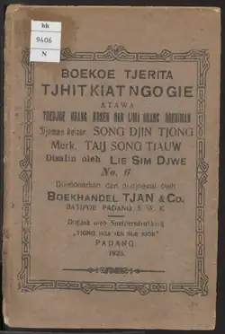 - Tjerita Tjhit Khiat Ngo Gie atawa toedjoe orang kosen dan lima orang boediman djeman keizer Song Djin Tjong merk Taij Song Tiauw (1916, serialized in Sri Soematra, translation of a Chinese novel "The Seven Heroes and the Five Gallants")[1]