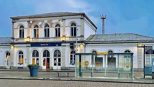 Lier railway station (Dutch: Station Lier; French: Gare de Lierre)[a] is a railway station in Lier, Antwerp, Belgium.[1] The station opened on 23 April 1855 on railway lines 13 and 15. Until 1988, the station was also on line 205, when this line closed. The train services are operated by the National Railway Company of Belgium (NMBS/SNCB).[2]